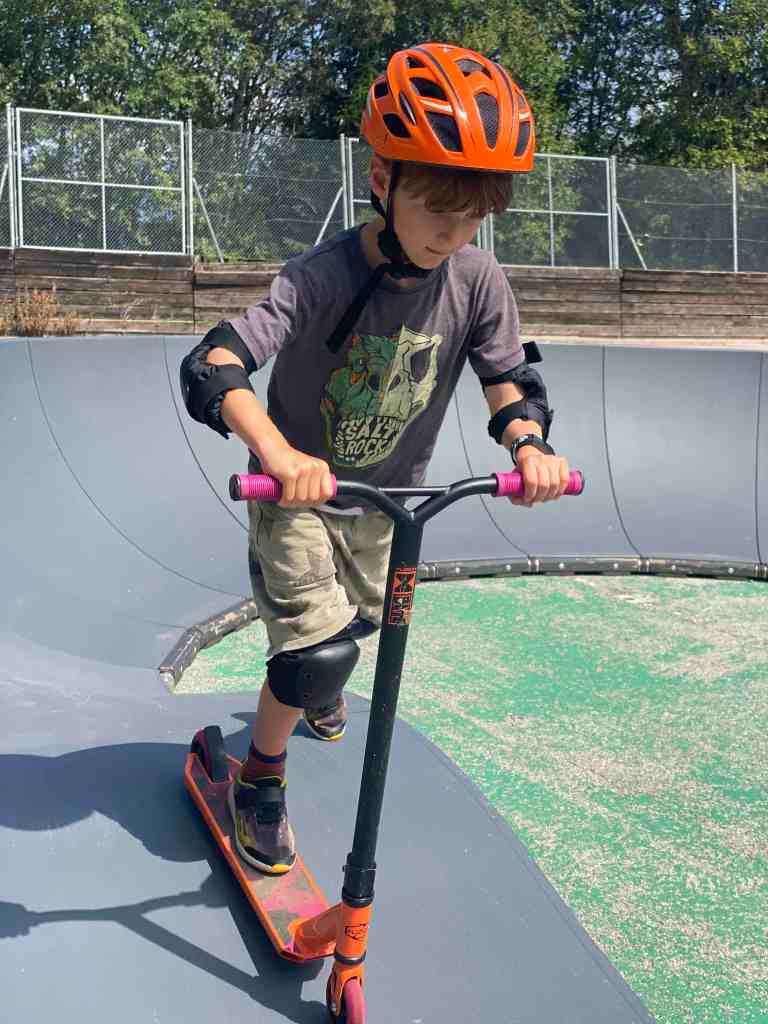 Just above our chalet there is a pump track where you can use a scooters, bikes and skateboards. The trick is to pump up and down with your knees. Eventually you go round the track without putting your foot down!