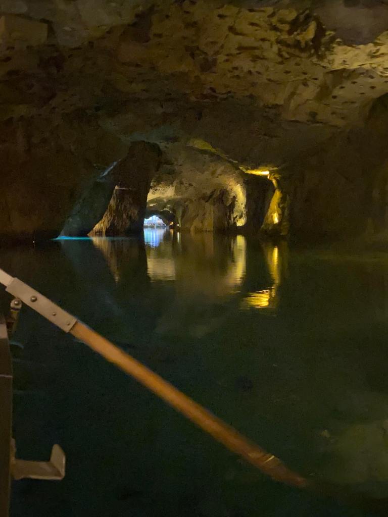 We went on a boat into the biggest underground lake in Europe and we saw large rainbow trout. They put rainbow trout in there as they clean the water so the villagers can drink it.