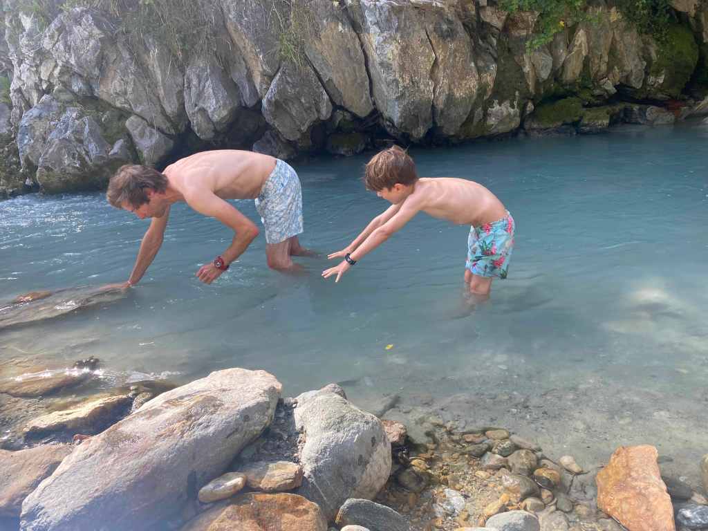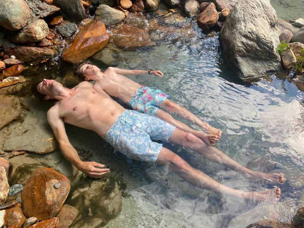 We went to some hot springs in a river the bottom of the valley. Next to the hot springs there was a freezing cold river. We all went in the river and then jumped into the hot springs and warmed up!