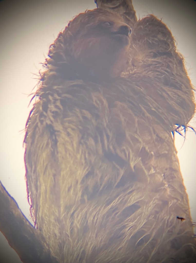 On Tuesday we went on a walk with a guide in a forest called the Bogarin Trail in La Fortuna. La Fortuna is at the base of an active volcano called Arenal. On the hike, we saw lots of animals including: snakes, anteaters, frogs, owls, toucans and lots of other beautiful and exotic birds! But for me the most exciting animal we saw were the sloths! Yes the slow, sleepy, mammals just happened to be having their every-two-days meal of leaves and were active! Look below to see the sloth moving\smiling